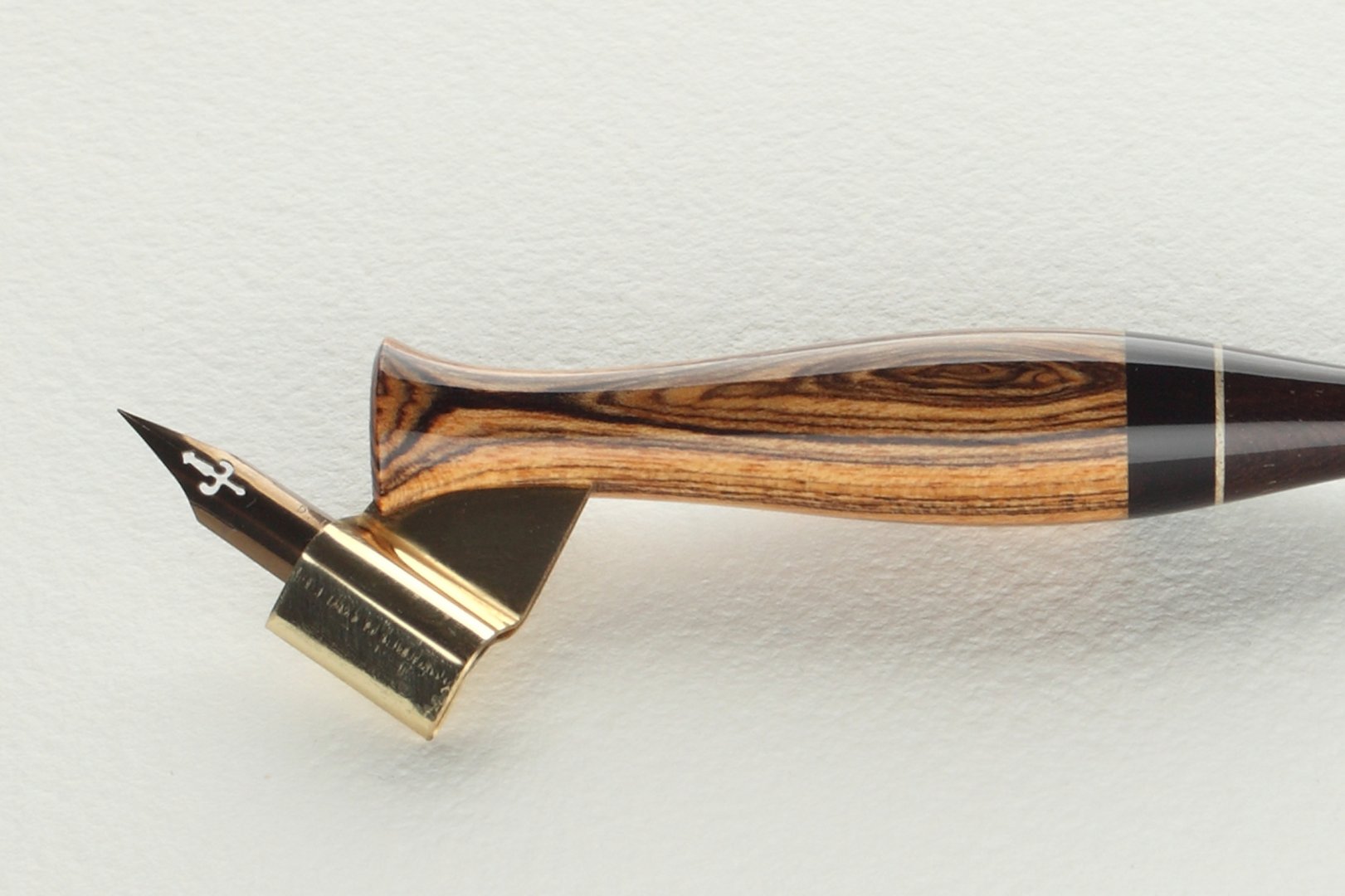 Pen holder made of bocote, gabon ebony and brazilian ebony wood, bright inset is made of maple wood.