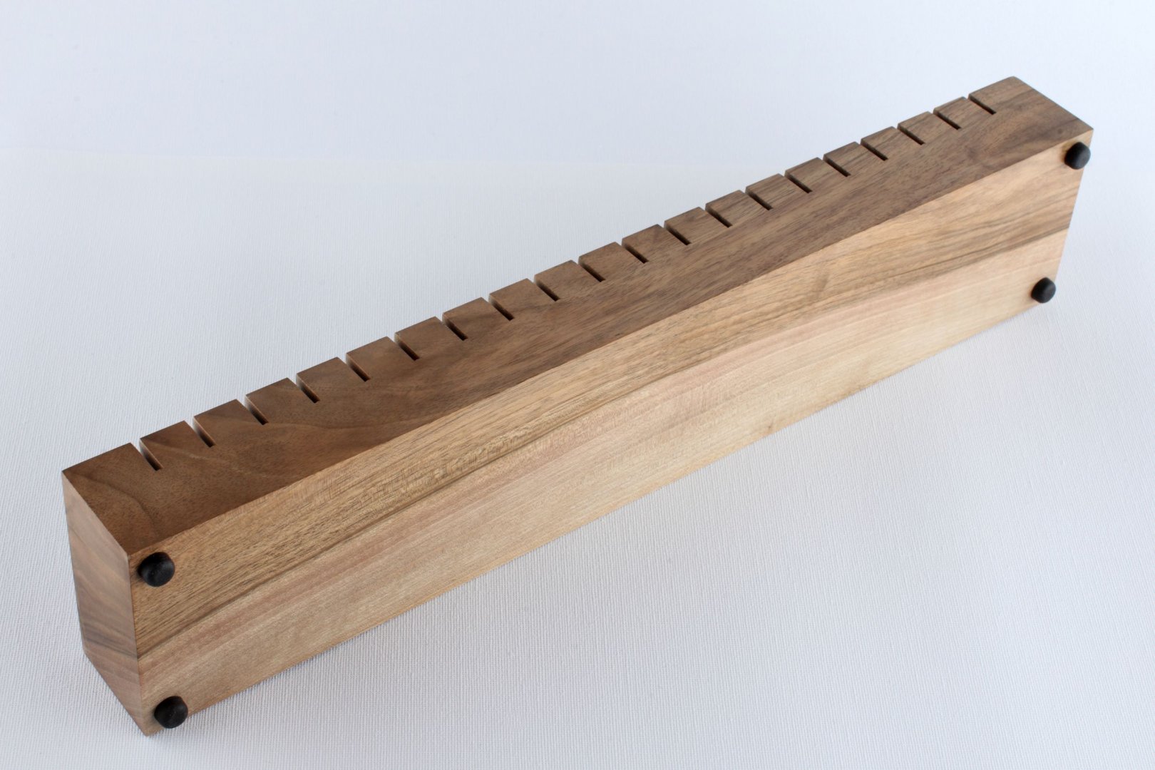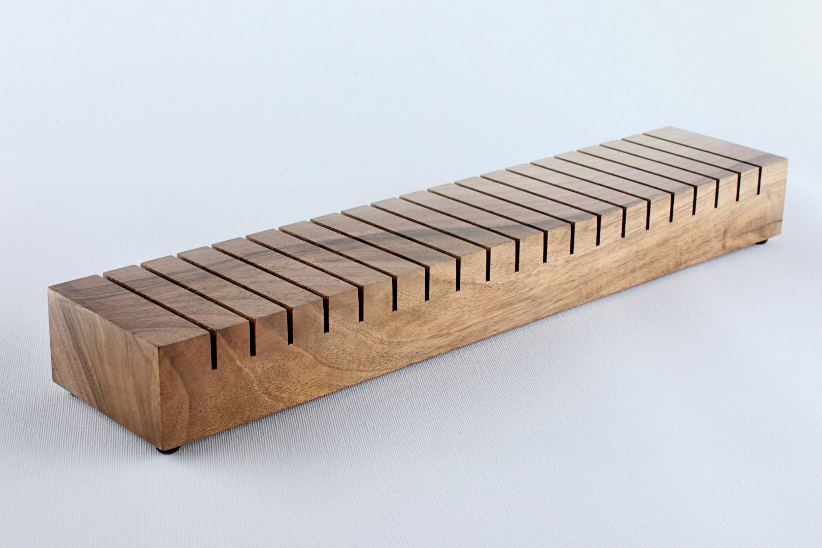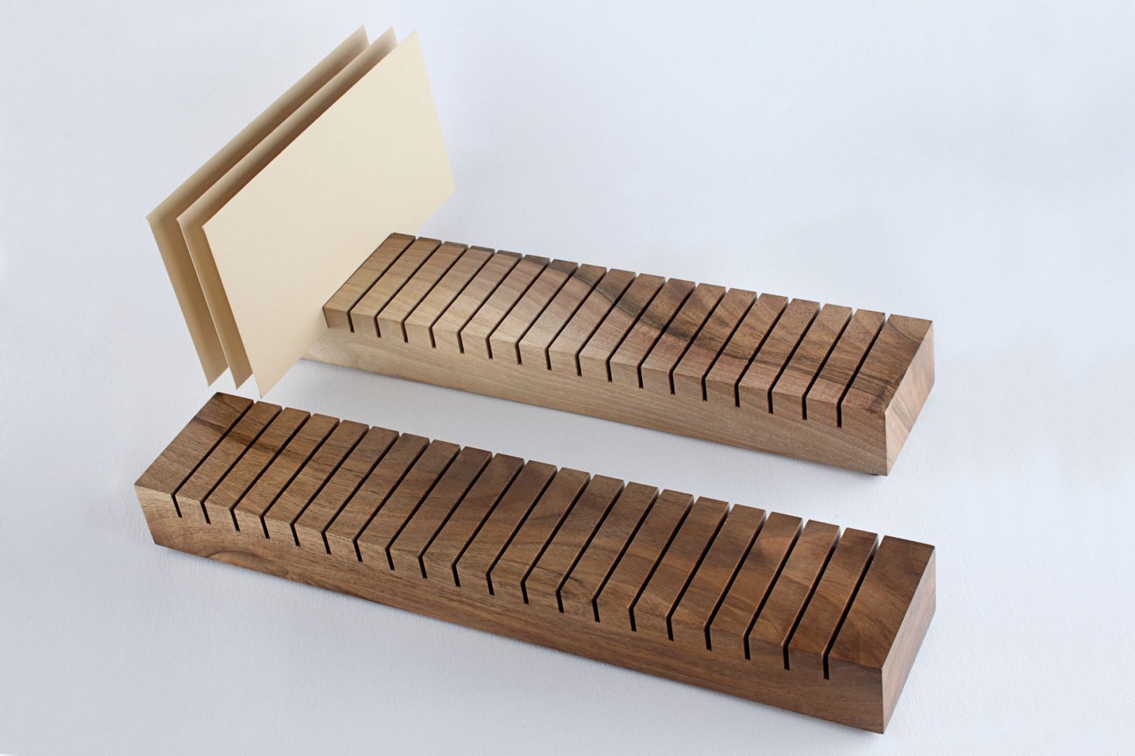 Unique hand-crafted, top class wooden envelope dryer. Made of selected walnut wood with a beautiful grain, carefully hand-polished and finished with high quality wax. Designed for 20 envelopes. Four rubber pads guarantee stability on every surface.