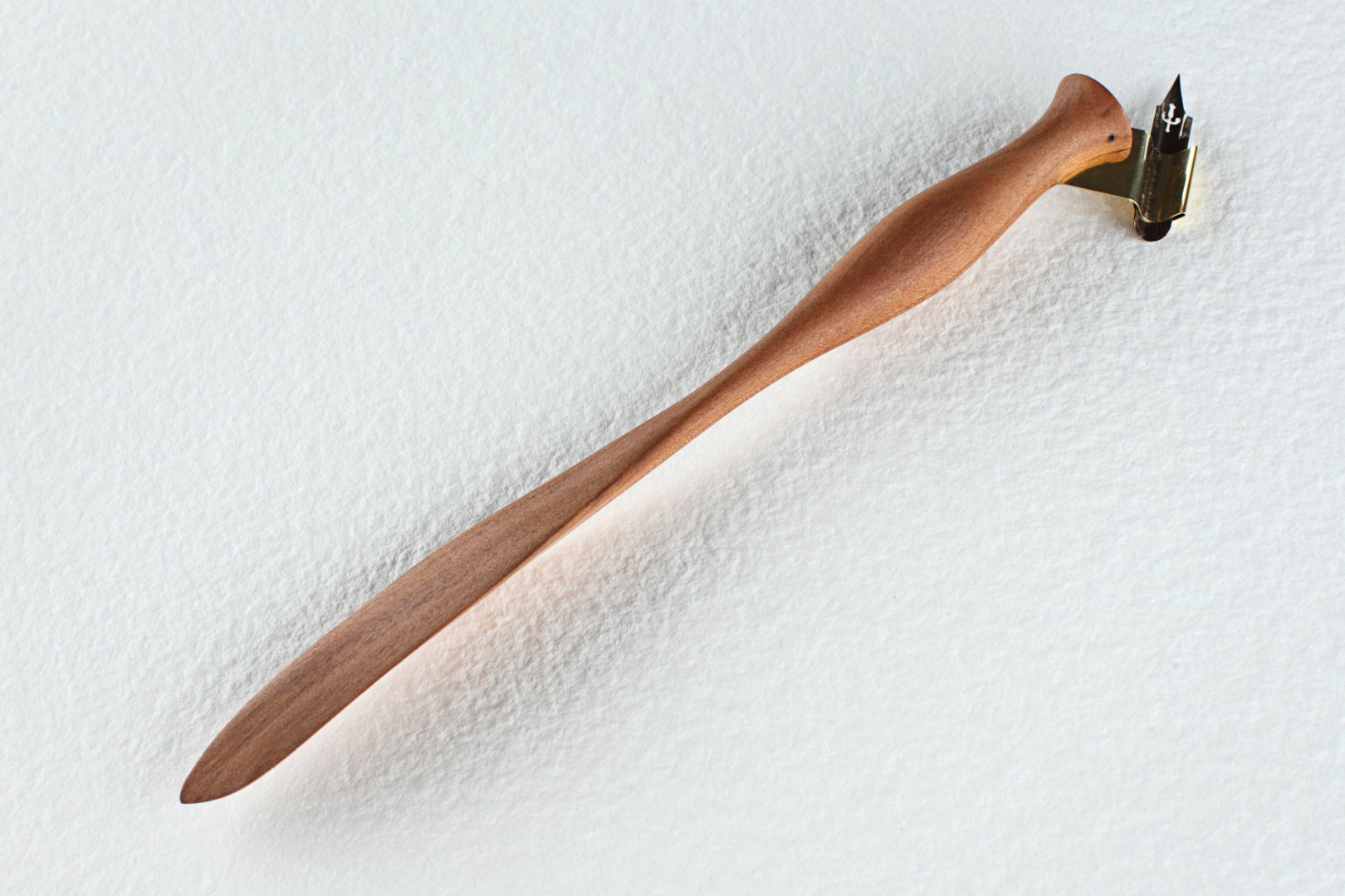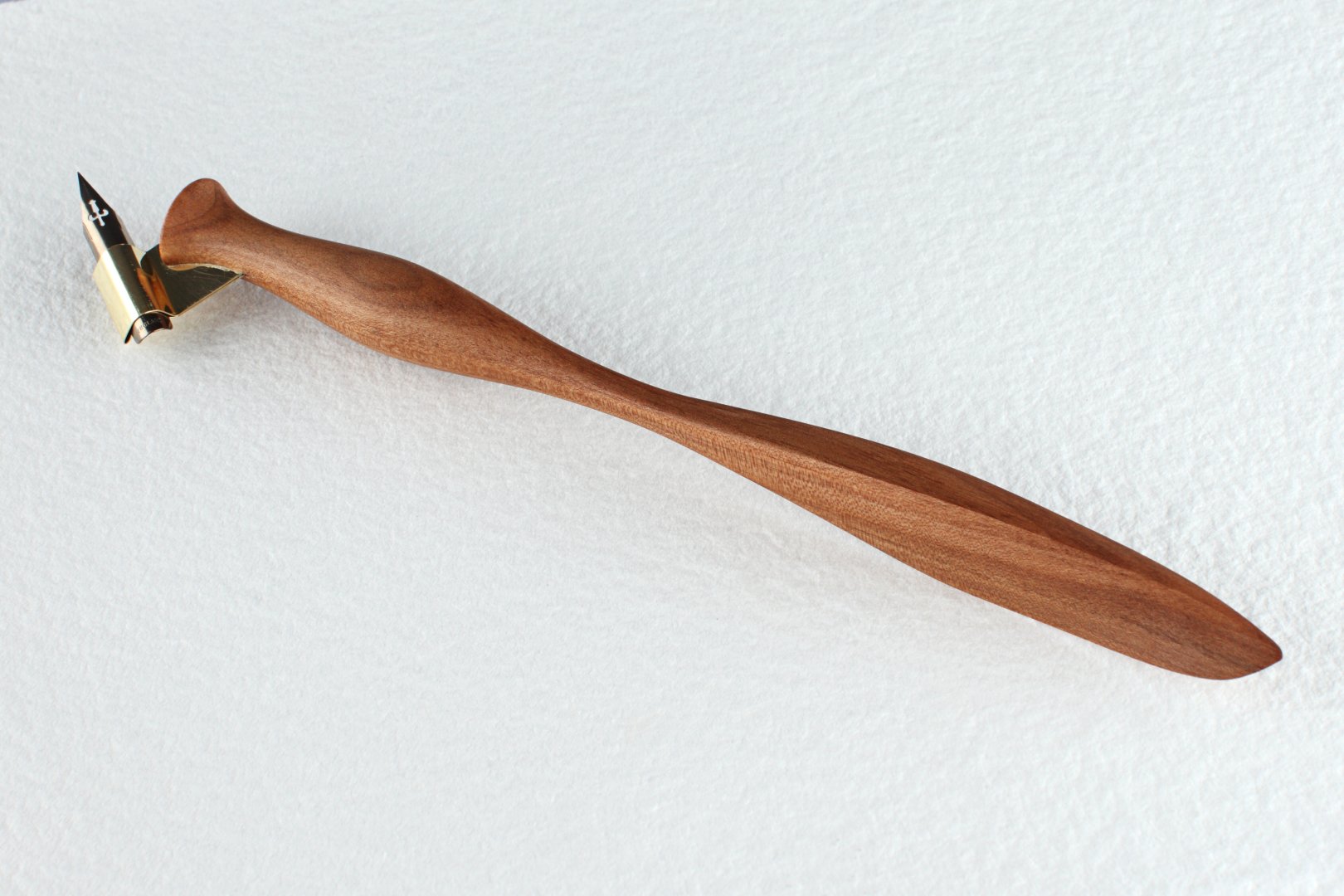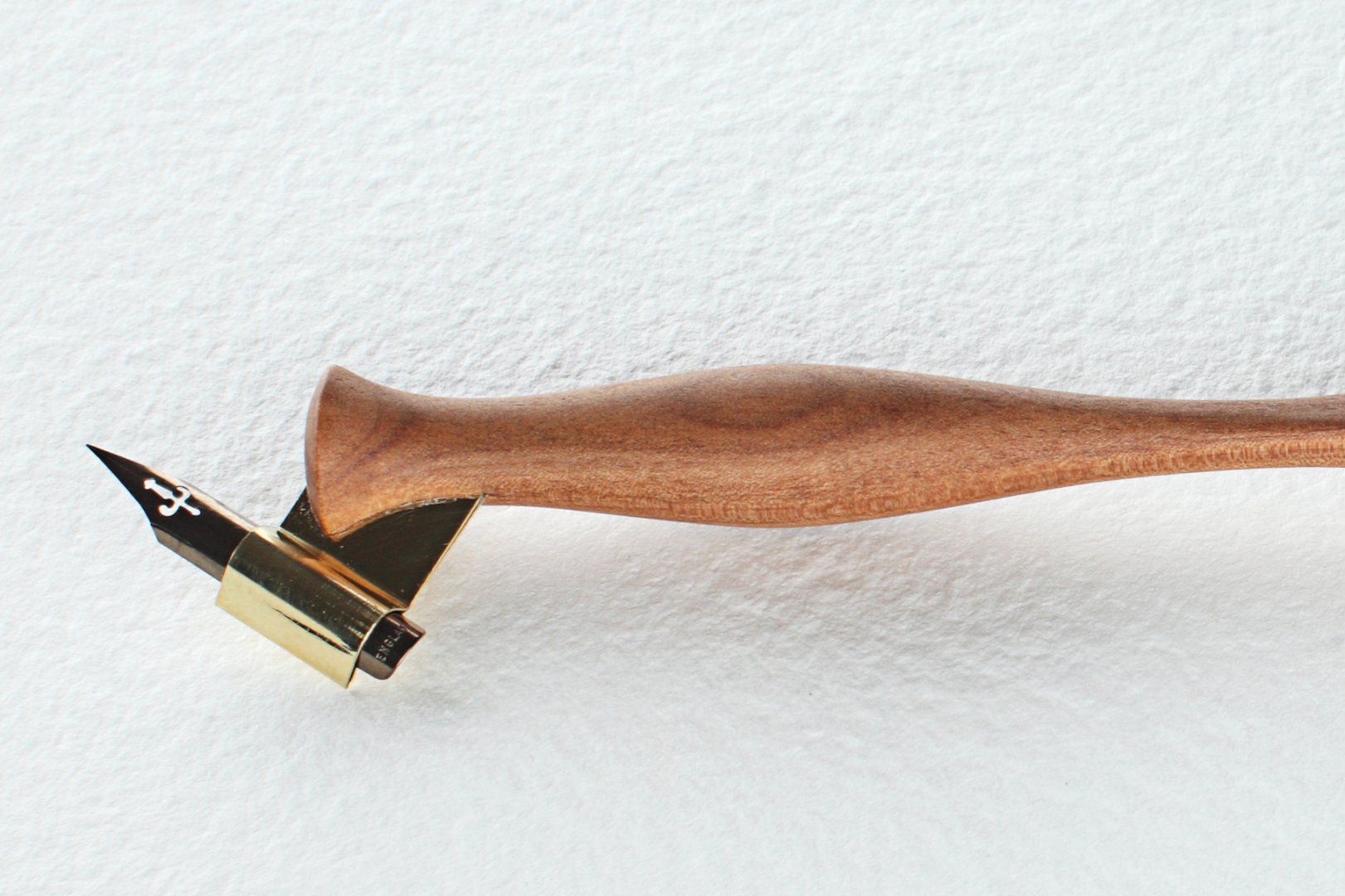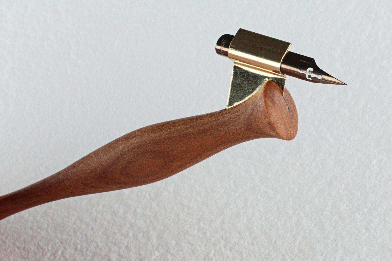 Amazing hand carved pen holder made of apple wood and finished by top class danish oil. Nib flange made of brass.