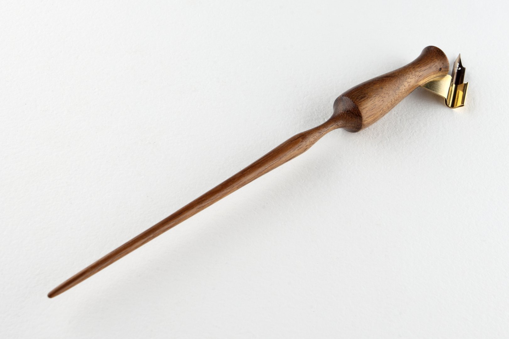 Pen holder made of Amazaque wood and finished with natural wax. Nib flange is made of brass.