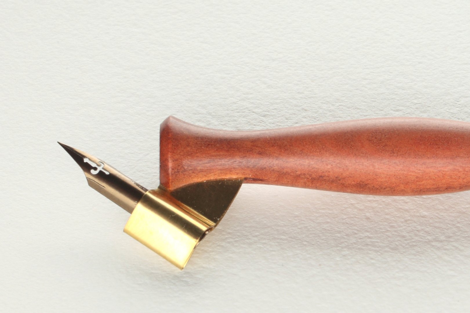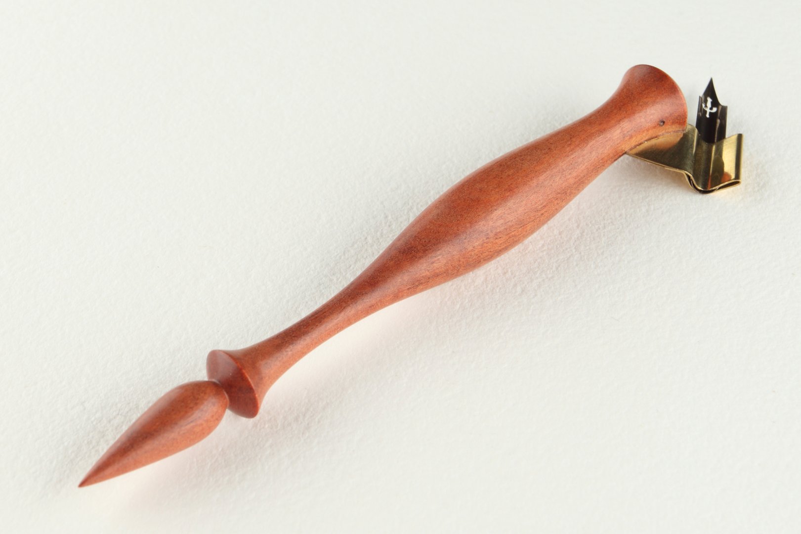 Pen holder made of pink ivory wood finished with wax. Nib flange is made of brass.