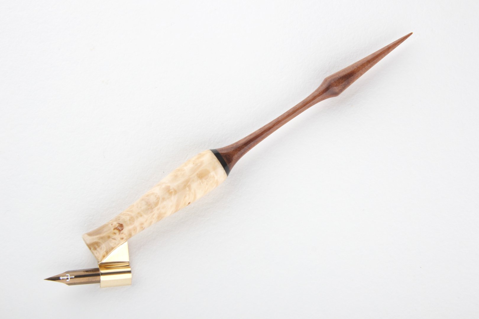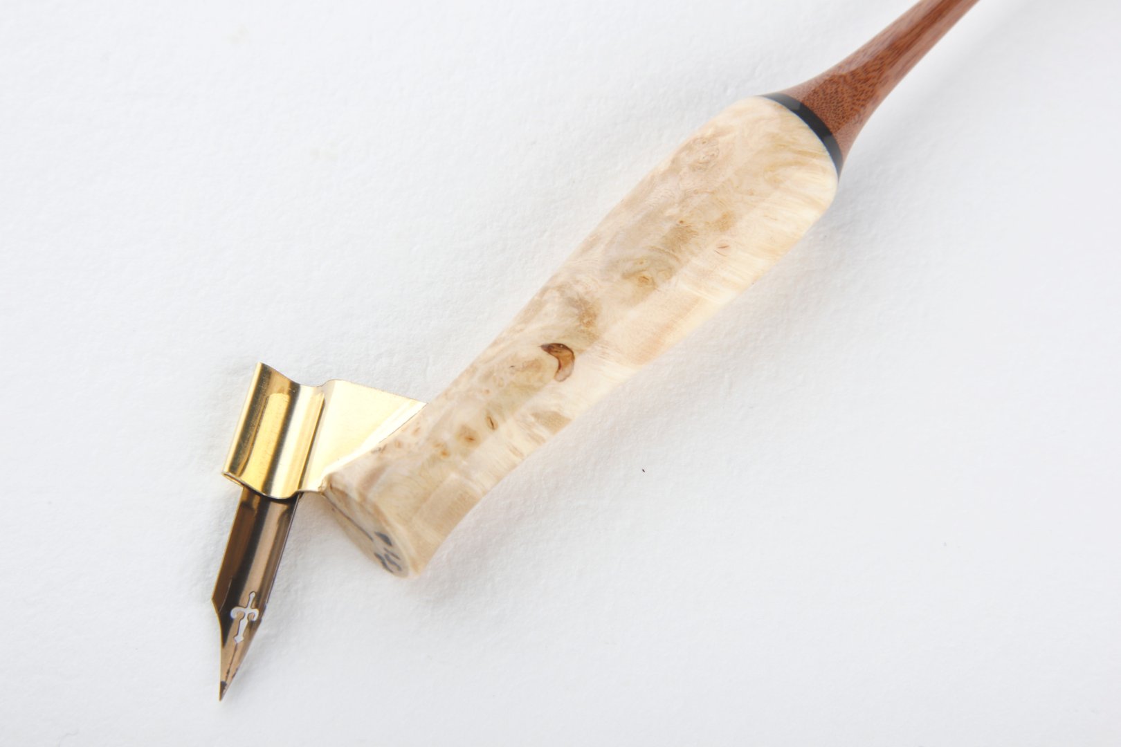 Pen holder made of stabilized maple burl, african ebony and pay ferro wood.