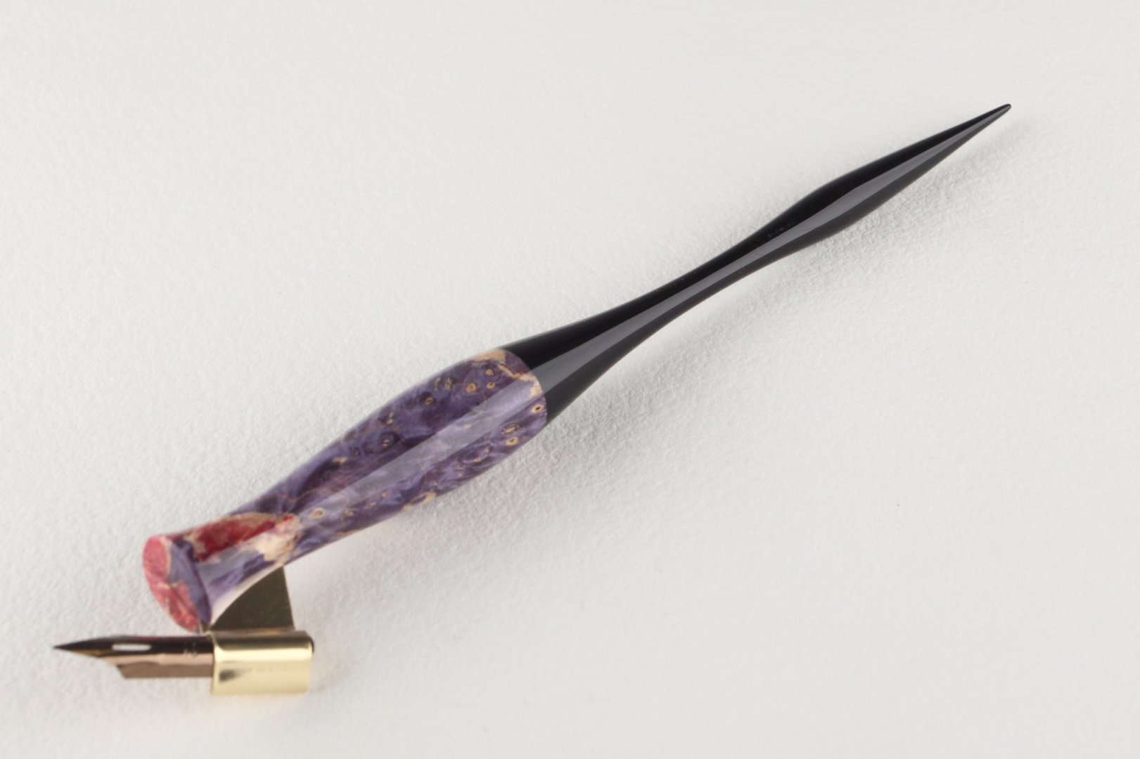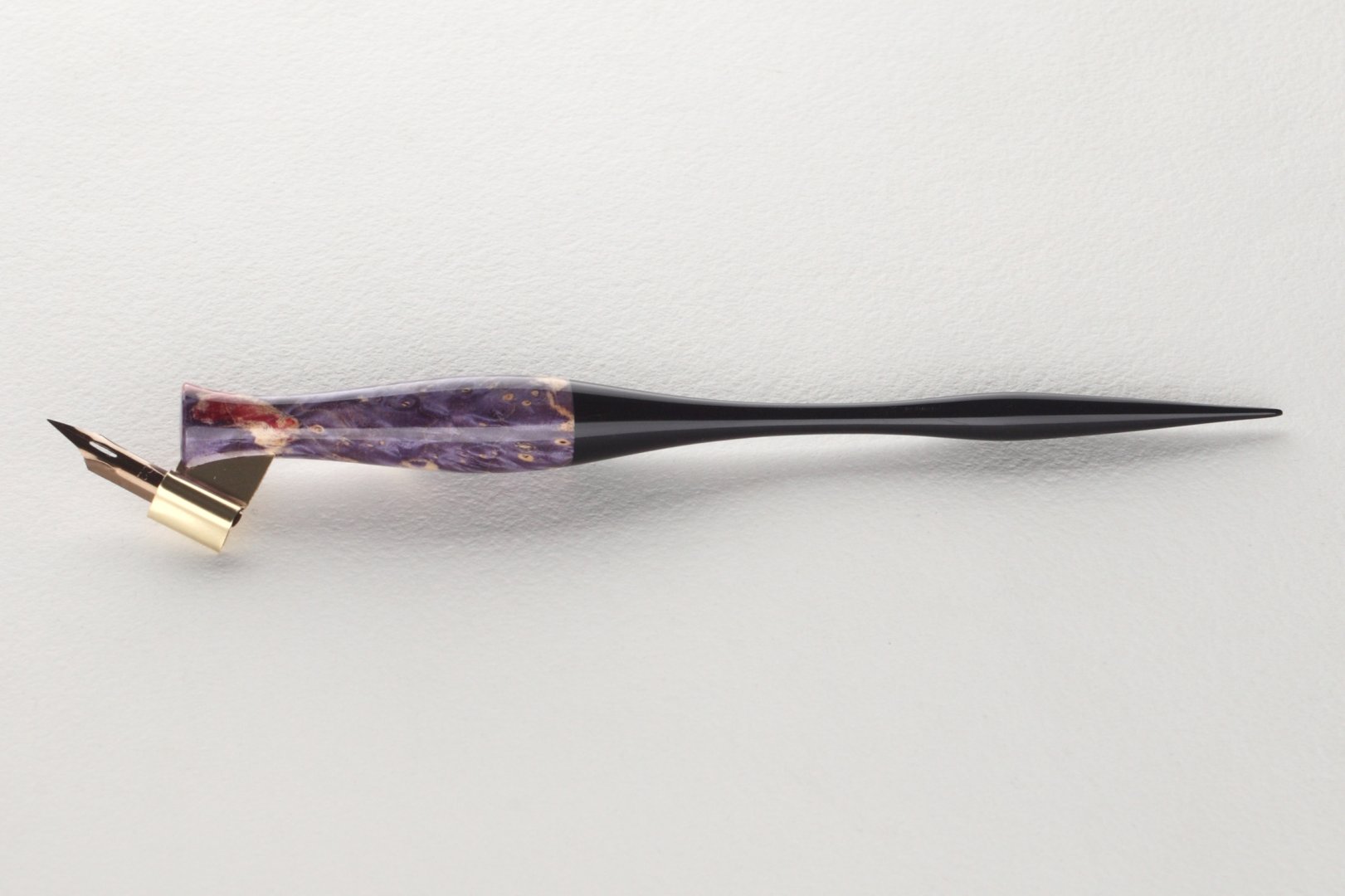 Pen holder made of stabilized maple burl and african ebony wood.